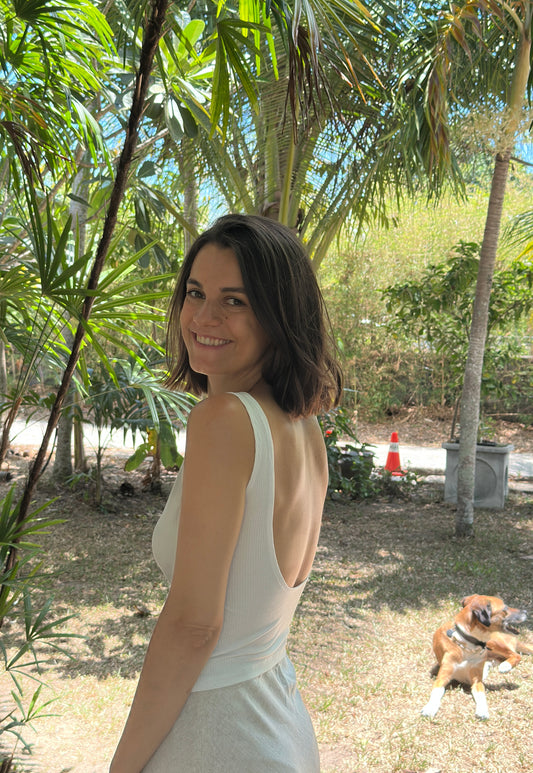 The Mia Top is a fitted jersey top with a clean, slightly boat shaped neckline at the front and a deeper back neckline. The front is fully lined for a smooth finish, with the option to add padding if you like. A simple and flattering summer top, perfect for warm days and easy styling.